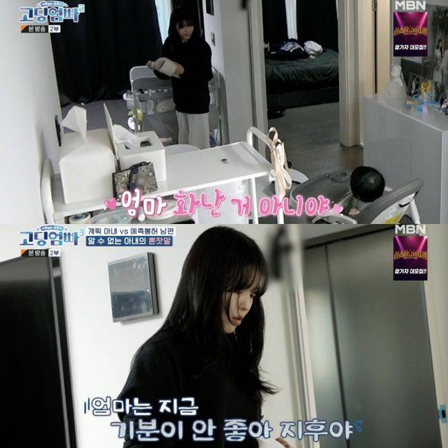 뿐만 아니라 김민정의 이상 행동까지 포착됐다. 김민정은 출근한 남편이 연락되지 않자 초조함을 넘어 불안함을 보였고, 이후 집으로 돌아온 남편과 연락 문제로 다투게 됐다. 알고보니 남편은 바로 자동차 경정비 일을 하면서 보험사 출동 서비스를 하는 등 투잡을 뛰고 있었기에 연락이 잘 되지 않았던 것. 이후 남편이 화를 내고 나가자 김민정은 묵언 청소를 시작했고, 그때 아들 지후를 향해 “엄마 화난 거 아니야. 괜찮아”라고 말했지만 분위기는 차갑게 식어갔다. 급기야 “엄마 기분이 안 좋아, 아니야 기분 좋아. 울고 싶다, 아니야 괜찮아”라며 급변하는 감정을 보이며 자기 최면을 걸어 걱정을 안겼다.