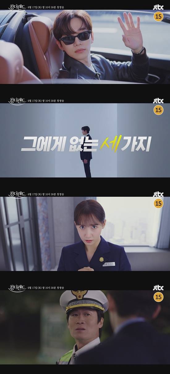 JTBC 새 토일드라마 '킹더랜드'가 모든 것을 다 가졌지만 주택 청약 통장과 웃음, 연애 세포는 갖지 못한 신입 본부장 구원(이준호 분)의 사랑 도전기를 담은 3차 티저 영상을 공개했다.