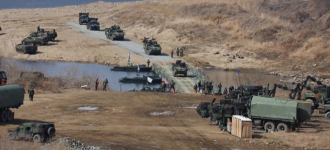 | ▲ 한미연합연습 '자유의 방패' 개시 한미연합연습 '자유의 방패'가 시작된 지난 3월 13일 경기도 연천에서 한미연합훈련이 실시되고 있다. [자료사진] |