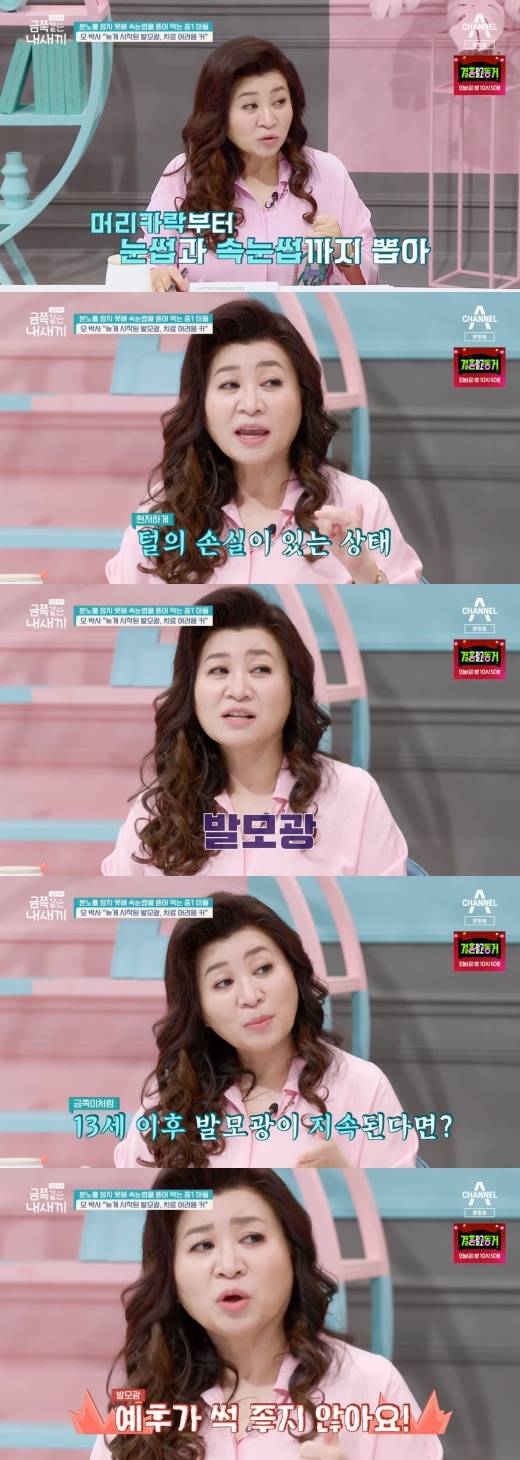 19일 밤 방송된 종합편성채널 채널A ‘요즘 육아 금쪽같은 내 새끼’에는 자신의 머리카락, 눈썹, 속눈썹까지 뽑는 중1 금쪽이의 사연의 등장했다.