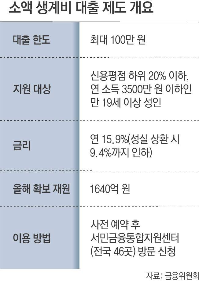 소액 생계비 대출은 수십만 원을 구하지 못해서 불법 사금융으로 내몰리는 금융 취약계층을 지원하기 위해 마련된 제도다. 금융당국은 대출 상담 과정에서 채무 조정이나 복지, 일자리 상담을 함께 받도록 하는 일종의 ‘미끼상품’ 역할도 하고 있다고 설명한다.》