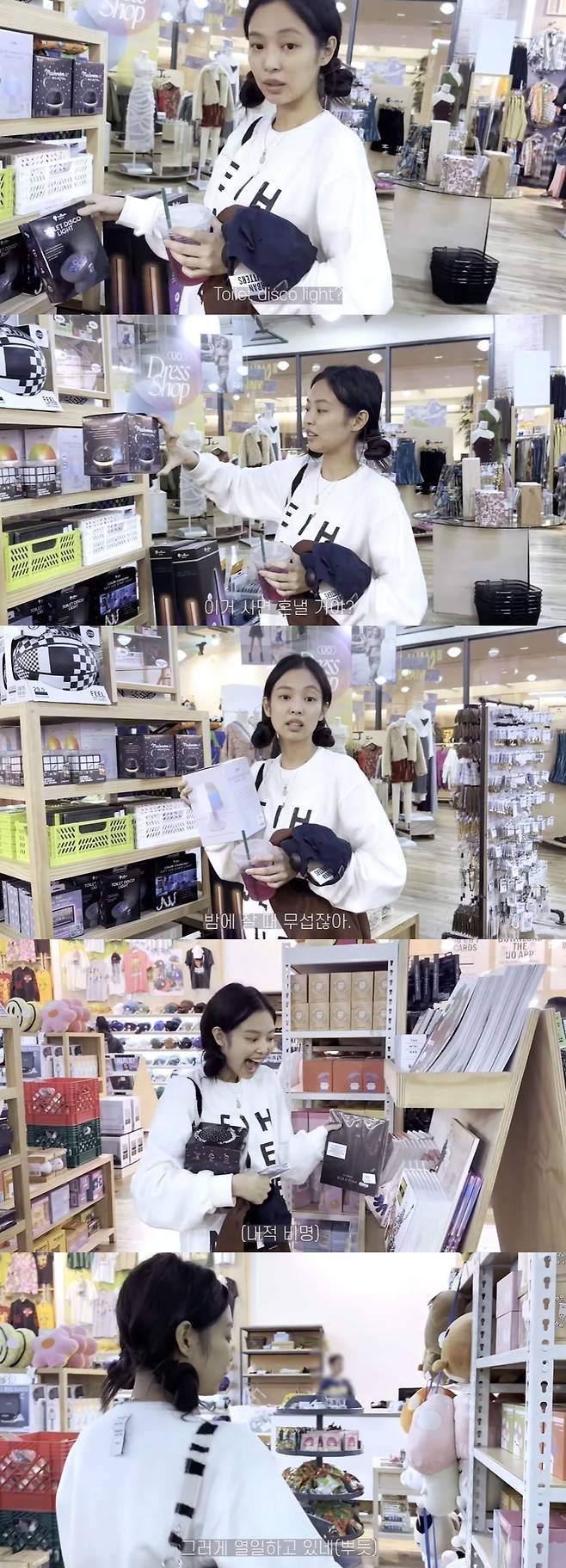 영상에서 제니는 “티셔츠를 좀 사겠다. 귀여운 거. 아직은 마음에 드는 게 없다”며 쇼핑에 한창인 모습이다. 그는 한 무드등에 관심을 보이면서 "이거 사면 안돼? 이거 사면 혼낼 거야?"라며 지인에게 허락을 구해 시선을 끌었다.