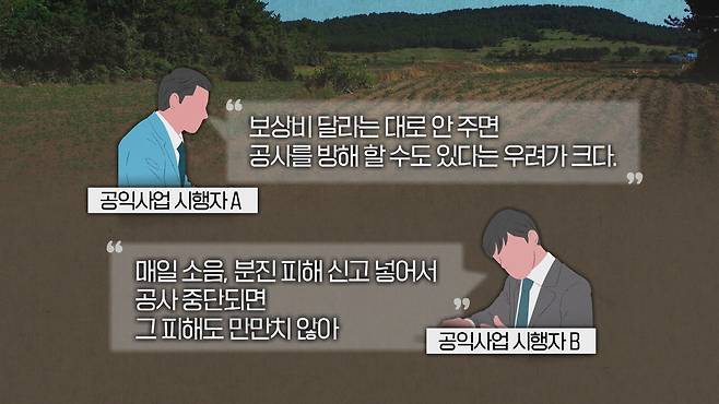 공익사업 시행자들도 투기 현장을 다 목격했지만, 토지보상법상 보상을 안 해줄 수 없는 데다 주민 민원과 공사 방해를 우려해 요구를 들어주는 실정이다.