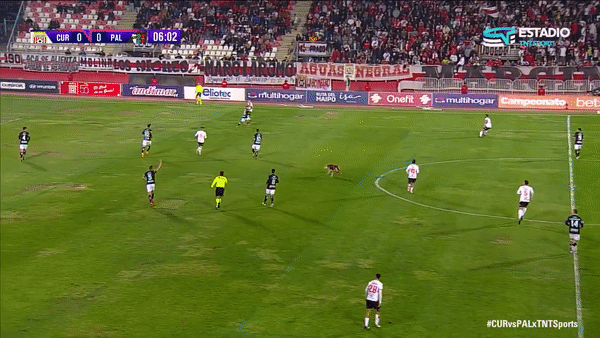 지난 14일 쿠리코 우니도와 팔레스티노와의 경기 중 갈색 털을 가진 큰 개가 전반전 6분이 지날 즘 경기장에 뛰어 들어왔습니다.