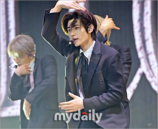 [마이데일리 = 한혁승 기자] 그룹 엔하이픈 성훈이 22일 오후 서울 안암동 고려대학교 화정체육관에서 진행된 미니 4집 '다크 블러드(DARK BLOOD)' 쇼케이스에서 멋진 무대를 선보였다.