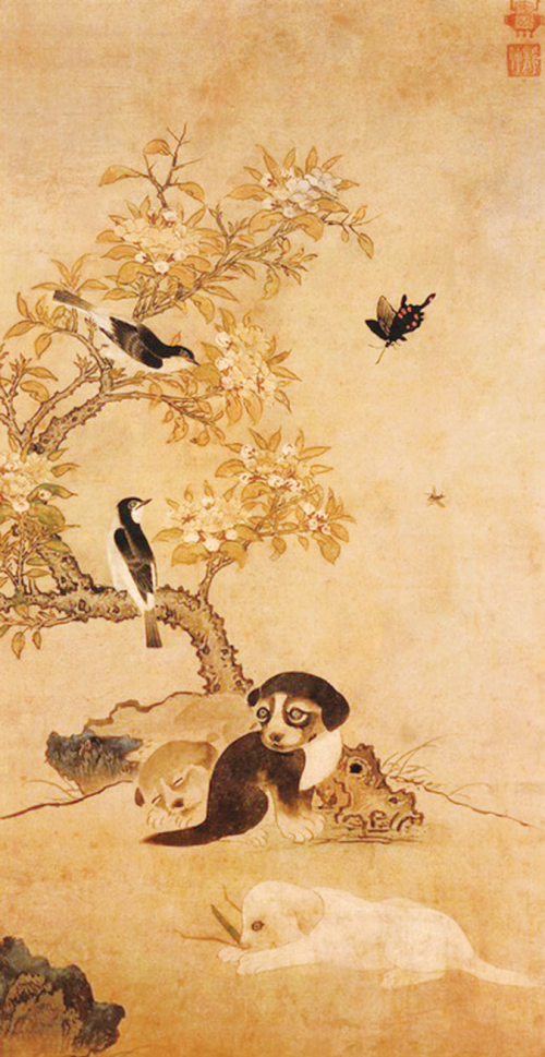 이암(李巖) ‘화조구자도(花鳥狗子圖)’