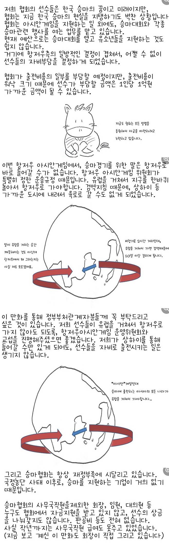 AG 대표에 1인당 1억 부담 요구한 박서영 승마협회장…“현실 벅차다” 만화로 어려움 호소