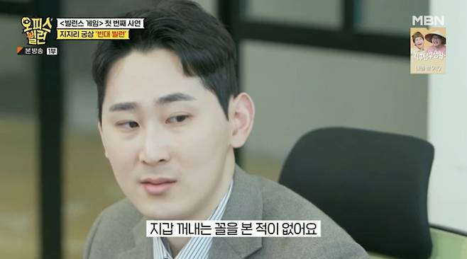 회의에 늦은 후임이 회의실에 뛰어오자 선임은 "뛰지마. 건물 무너져"라고 하는데 이어 옆에 앉은 후임이 덩치가 크다는 이유로 "자리 좀 옮겨달라. 벽이 있는 것 같다. 폐쇄공포증이 있다"라며 후임을 창피하게 만들기도 했다.