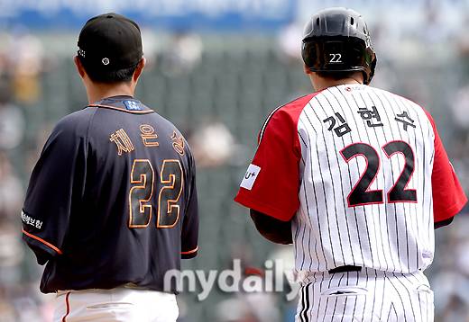 [LG 김현수와 한화 채은성은 똑같은 등번호 22번을 달고 있다. 사진 = 유진형 기자 zolong@mydaily.co.kr]