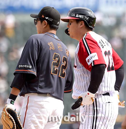 지난 21일 서울 잠실야구장에서 진행된 2023 신한은행 SOL KBO리그 한화 이글스와 LG 트윈스의 경기에서도 김현수와 채은성은 많은 이야기를 나눴다. 두 선수는 팀을 이끌어가는 베테랑이기에 서로 정보를 공유하는 모습이었다.