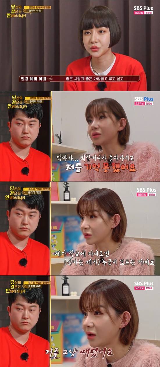 이 자리에서 빨강 아내는 자신의 어린시절을 털어놨다. 그는 "엄마가 외할머니 돌아가시고 저를 잠시 기억 못했다. 제가 학교에 다녀오면 누군지 모르고, 밤이 되면 막대기로 저를 그냥 때렸다"면서 "안 해도 될 상상을 계속하면서 자다가 엄마가 조금이라도 뒤척이면 날이 서 있었다. 행복하지 않았다"고 떠올렸다.