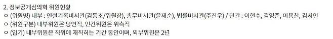 | ▲ 2022년 7월 대통령비서실이 공개한 정보공개심의위원 명단 |