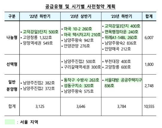 그러나 정부는 시장이 하락기인 올해도 윤석열 정부의 공공주택 브랜드인 '뉴:홈' 등을 통해 7430가구의 사전청약을 계획하고 있다. 작년 말 사전청약을 진행한 3125가구와 합치면 총 1만555가구 규모에 달한다. 앞서 공급한 '고양창릉' '양정역세권' '남양주진접2'가 평균 15.1대 1의 경쟁률로 흥행함에 따라 물량 확대도 검토 중이다. 사전청약 횟수를 늘리고 시기를 앞당기거나 공급물량을 늘리는 방안 등을 검토 중이다.