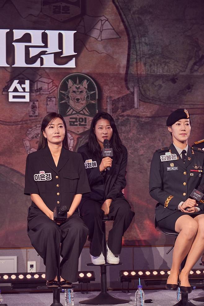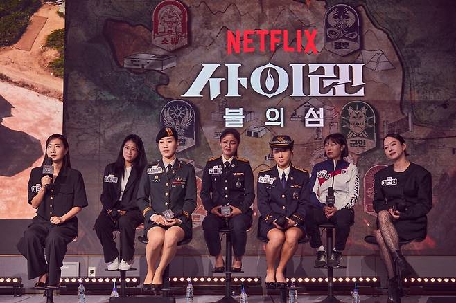 24일 오전 서울 마포구 호텔 나루 서울 엠갤러리에서 넷플릭스 예능 '사이렌: 불의 섬' 제작발표회가 열렸다. 이날은 이은경 PD, 김경애(스턴트팀 리더), 김봄은(군인팀 리더), 김현아(소방팀 리더), 김혜리(경찰팀 리더), 김희정(운동팀 리더), 이수련(경호팀 리더)이 참석했으며 진행은 방송인 박경림이 맡았다.