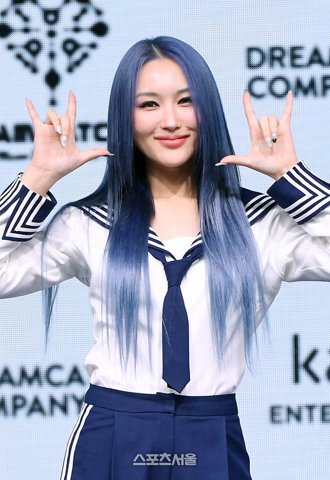 드림캐쳐 시연이 24일 서울 광진구 건국대학교 새천년관에서 진행된 미니 8집 앨범 '아포칼립스 : 프롬 어스(Apocalypse : From us)' 발매 기념 쇼케이스에서 취재진을 향해 포즈를 취하고 있다.