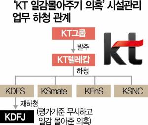 KT그룹이 발주한 일감을 KT텔레캅이 수주받아 KDFS에 재하청을 주고 KDFJ가 다시 하청을 받게 된 구조다.