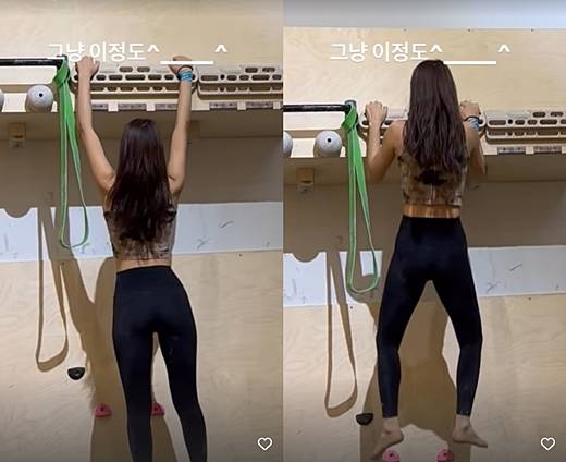 설현은 24일 "그냥 이 정도"라며 웃음 이모티콘과 함께 영상을 게재했다. 민소매 상의에 레깅스 차림의 설현이 벽의 돌출 부분을 붙잡고 턱걸이 운동을 하는 모습이다. 팔, 등근육에 지탱한 채 거뜬하게 수 차례 운동을 해내는 모습이 그야말로 감탄을 불러일으킨다.