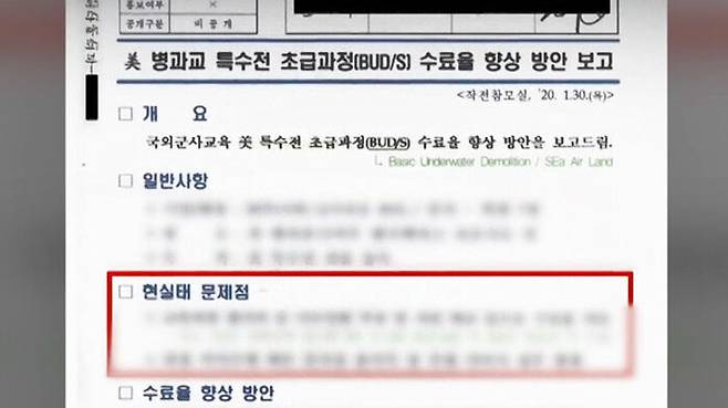 문서에는 네이비실에 초급과정 위탁교육을 보낸 장교와 부사관들의 낮은 수료율에 대한 이유, 수료율 향상 방안이 담겨 있었습니다.