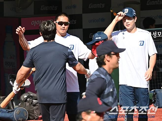 사직구장 그라운드에서 '베어스 동창회'가 펼쳐졌다.