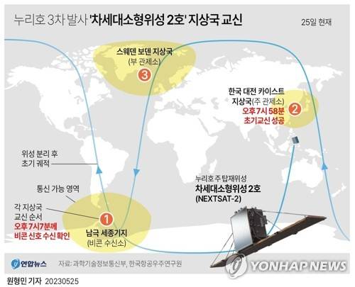 [그래픽] 누리호 3차 발사 '차세대소형위성 2호' 지상국 교신(종합)