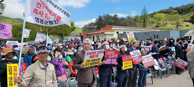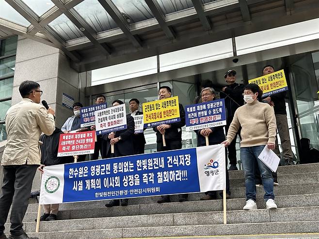 "다시 한번 선언합니다. 오늘 한수원 이사회의 '고준위건식저장시설' 건설에 대한 결정은 무효이고 영광군민들은 끝까지 막아낼 것입니다."