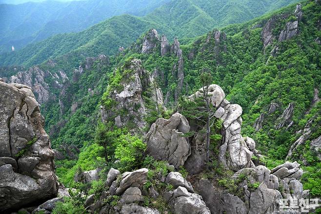 한계령을 넘어서는 순간 펼쳐지는 남설악.