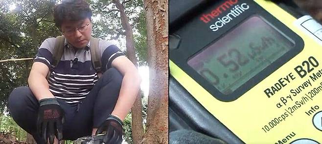 2019년 일본 도쿄 현장 취재 당시, 유독 방사능이 높은 지역으로 알려진 이른바 '핫스팟'을 취재한 적이 있었습니다. 당시 측정기를 땅에 가까이 대보니, 방사선량은 0.52μSv/h가 측정됐습니다.