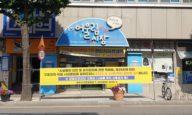 충주 중앙어울림시장 정경모 상인회장 "충주시, 정부공인 안전진단업체로 등록되지 않은 업체와 수의계약... E 등급 받아들일 수 없어"