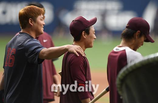 김태진, 송성문 등 늦게까지 훈련하던 선수들은 그를 반갑게 환영했고 오윤 코치를 비롯한 코칭스탭들과는 포옹하며 안부를 물었다. 짧은 만남이었지만 옛 동료들을 만남 한현희의 표정을 행복함이 가득했다.