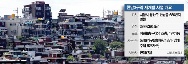 상가 조합원들의 소송으로 관리처분 가처분이 인용됐던 한남3구역 재개발 사업이 재판에서 승소했다. 조합은 다음달 내 용산구청으로부터 관리처분 승인을 받고 이르면 가을께 이주를 시작할 계획이다.