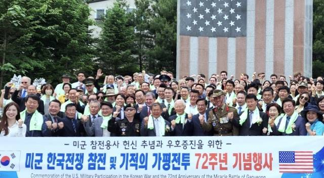 ‘미국 한국전쟁참전 및 기적의 가평전투 72주년 기념행사’가 26일 경기 가평 북면의 한국전쟁미군참전기념비에서 열렸다.