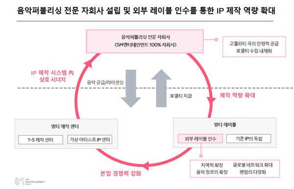 더불어 SM엔터테인먼트는 외부 레이블 인수 및 음악 퍼블리싱 전문 자회사 설립을 통해 IP 제작 역량을 확대하는 한편 ▲별도 영업이익의 0.5~1배(목표 레버리지 배수)로 순차입금을 활용하는 자본구조 관리 ▲투자로부터 기대되는 주주수익률이 목표요구수익률보다 높은 경우 투자를 진행하는 목표요구수익률 기반 투자정책 ▲목표재무구조(별도영업이익의 0.5에서 1배에 해당하는 순현금 유지)를 설정하고 이를 바탕으로 여유 현금을 주주환원에 사용할 계획 등 SM 3.0 전략의 5대 방안을 통해 '팬과 주주 중심의 글로벌 엔터테인먼트 회사로의 도약'이라는 비전을 착실히 이행한다는 계획이다.