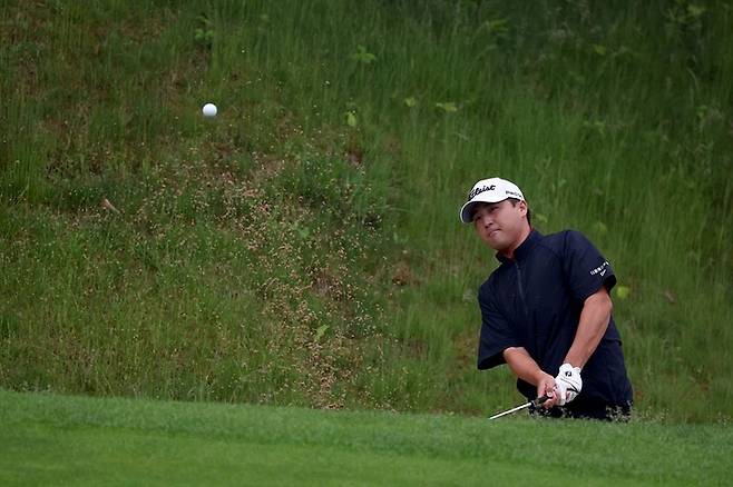 [서울=뉴시스] 조성봉 기자= 27일 경기도 이천 블랙스톤 이천 GC에서 열린 KB금융 리브챔피언십 3라운드 7번홀에서 이태훈이 벙커샷을 하고 있다. (사진=KPGA 제공) 2023.05.27. photo@newsis.com *재판매 및 DB 금지