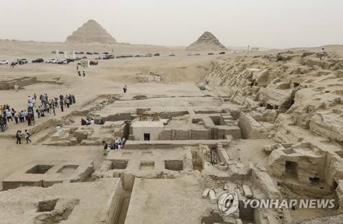 epa10657560 A general view shows people visiting the newly-discovered burial site in Saqqara, Giza Governorate, Egypt, 27 May 2023. Egyptian antiquities authorities have unveiled ancient workshops and tombs at the Saqqara necropolis, outside the capital Cairo. Saqqara is one of the most important burial sites of ancient Egypt and a UNESCO World Heritage site. EPA/KHALED ELFIQI