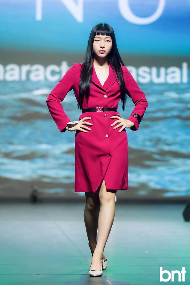 조이너스 패션쇼에서 위너 최하은이 워킹을 선보이고 있다.