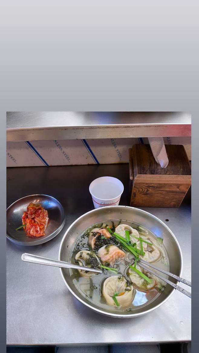또한, 고소영이 함께 올린 사진에는 시장조사가 끝난 후 먹은 식사인 듯한 만둣국이 올라왔다.