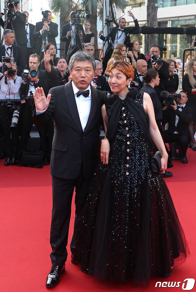 (칸=뉴스1) 이준성 기자 = 제 76회 칸 국제영화제 폐막일인 27일 오후(현지시간) 프랑스 남부 소도시 칸 ‘팔레 데 페스티발’(Palais des Festivals) 뤼미에르 대극장에서 열린 폐막식에서 일본 영화 감독 고레에다 히로카츠와 배우 안도 사쿠라가 레드 카펫에 오르고 있다.
