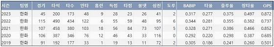| ▲ 한화 노시환 프로 통산 주요 기록 (출처: 야구기록실 KBReport.com) |