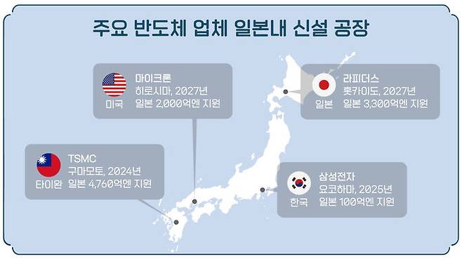 삼성이 요코하마에, TSMC가 구마모토에, 마이크론이 히로시마에 투자를 했거나 할 계획입니다. 여기에 맞춰 일본 정부는 투자한 액수만큼, 혹은 창출되는 일자리나 관련 업계의 시너지 효과만큼 수백억 엔에서 수천억 엔씩 지원을 하고 있습니다.