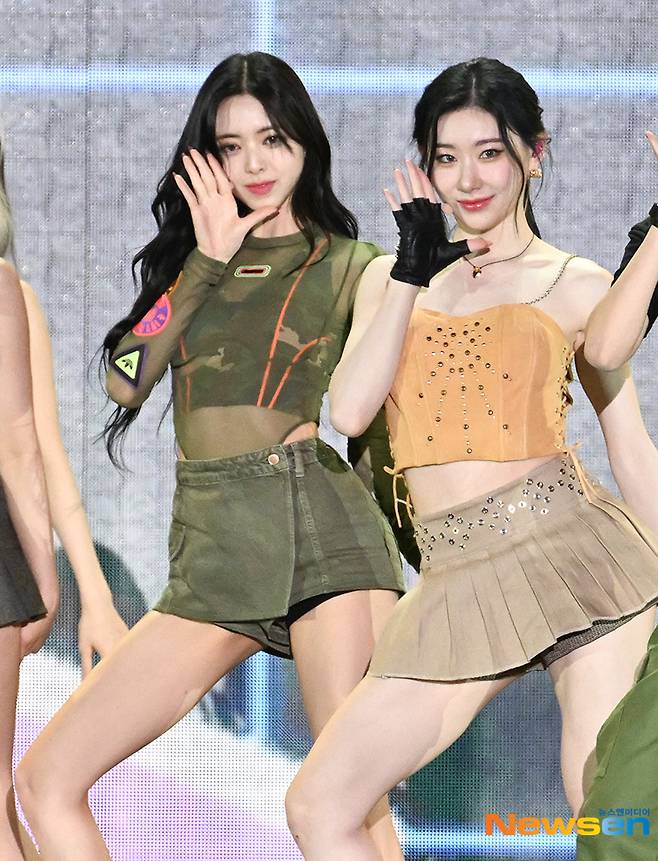 걸그룹 ITZY(있지) 유나, 채령이 5월 27일 오후 부산광역시 연제구 아시아드주경기장에서 열린 ‘제29회 드림콘서트’에서 무대를 펼치고 있다.