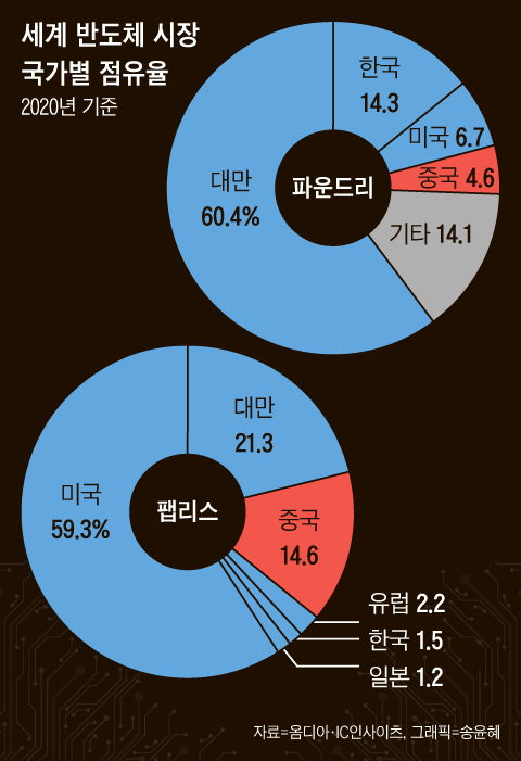일본과 서방 국가들이 미국의 대중(對中) 반도체 제재에 적극 동참하는 상황에서 중국은 한국마저 잃을 수 없는 입장이기도 하다. 현재 글로벌 반도체 진영 구도는 ‘빅4′인 한미일·대만과 유럽이 반도체 분야에서 밀착하고, 중국은 고립된 모양새다. 특히 파운드리(반도체 위탁 생산) 부문의 강자 대만, 반도체 장비 강국인 일본과 네덜란드는 미국과 손잡고 반도체 신(新)공급망을 빠르게 형성하는 중이다. 미국 정부는 지난해 10월 미국 기업이 중국의 반도체 생산 기업에 첨단 반도체 장비를 수출하는 것을 사실상 금지하는 제재를 발표했고, 지난 1월에는 일본·네덜란드 측에 대중 반도체 장비 수출 통제에 동참할 것을 촉구했다. 이 과정에서 중국에 대규모 반도체 생산 기지를 둔 한국은 미·중 사이에서 줄타기 할 수밖에 없는 처지라 중국이 적극 공략하는 타깃이 된 것이다.