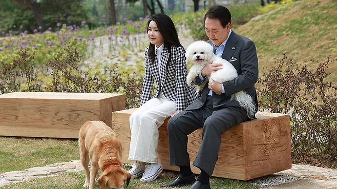 윤석열 대통령과 부인 김건희 여사는 지난해 12월 입양한 은퇴 안내견 '새롬이'가 서울 한남동 대통령 관저에서 지내는 모습을 오늘(28일) 방송을 통해 공개했습니다.