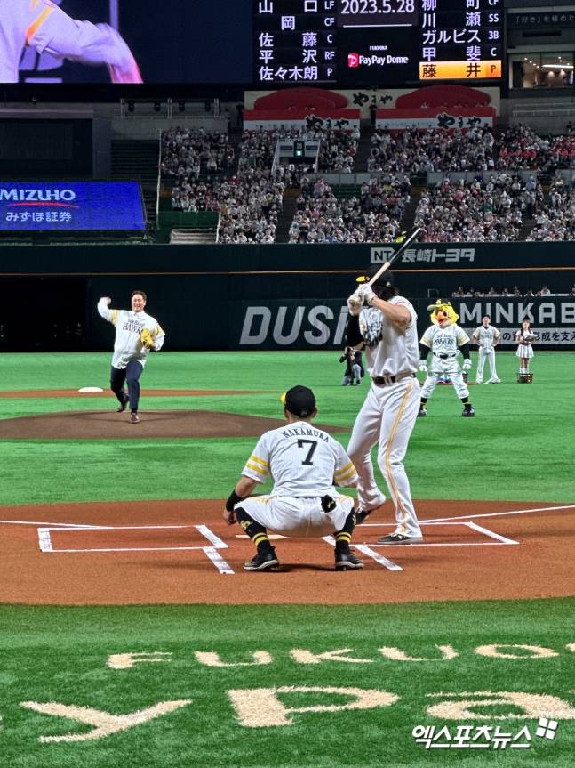이대호는 28일 소프트뱅크와 치바 롯데 마린스 경기가 열리는 후쿠오카 PayPay 돔에서 세리머니얼 시구를 했다. 8년 만에 소프트뱅크 홈구장을 찾은 이대호는 먼저 경기 전 그라운드에서 팬들에게 인사를 전했다.