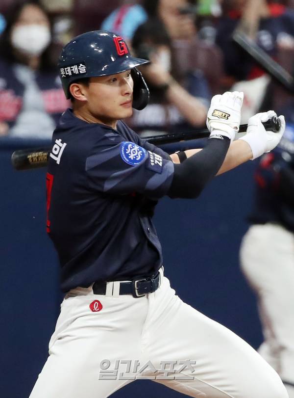 5회초 무사 윤동희가 안타를 치고 있다.