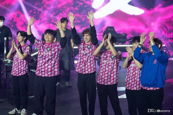 28일 오후 서울 중구 장충체육관에서 열린 발로란트 VCT 퍼시픽 결승전 페이퍼 렉스와 DRX의 경기서 페이퍼 렉스가 '패패승승승'으로 승리하며 초대 챔피언에 등극했다. 선수들이 팬들에게 인사하고 있다.
