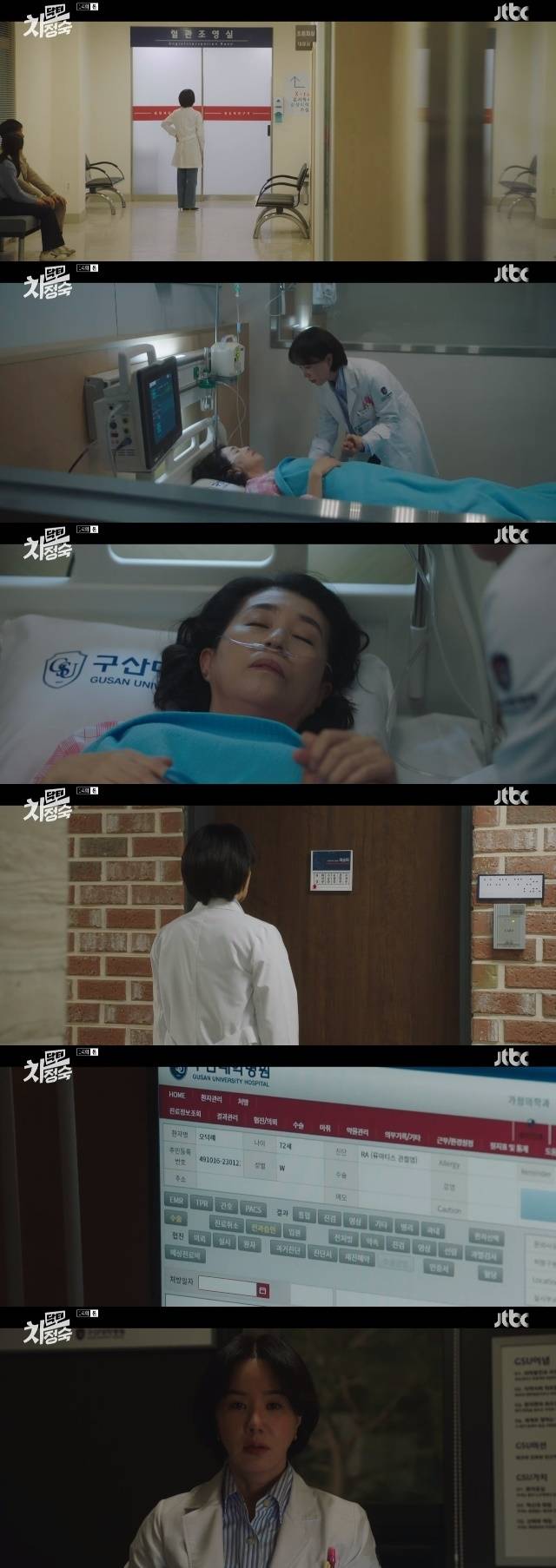 하지만 오덕례는 우울감과 여러 병 소견으로 계속해서 치료가 필요한 상황. 차정숙은 오덕례의 담당의사인 최승희의 교수실을 찾았다가 그녀가 진심으로 오덕례의 병을 신경쓰고 있는 모습에 마음이 조금 약해졌다. (사진=JTBC '닥터 차정숙' 캡처)