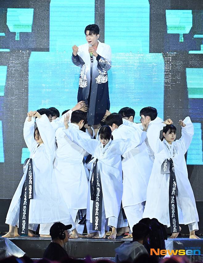 가수 나태주가 5월 28일 오후 부산광역시 연제구 아시아드보조경기장에서 열린 ‘2023 드림콘서트 트롯’에서 무대를 펼치고 있다.