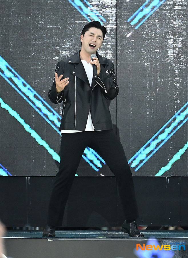 가수 이하준이 5월 28일 오후 부산광역시 연제구 아시아드보조경기장에서 열린 ‘2023 드림콘서트 트롯’에서 무대를 펼치고 있다.