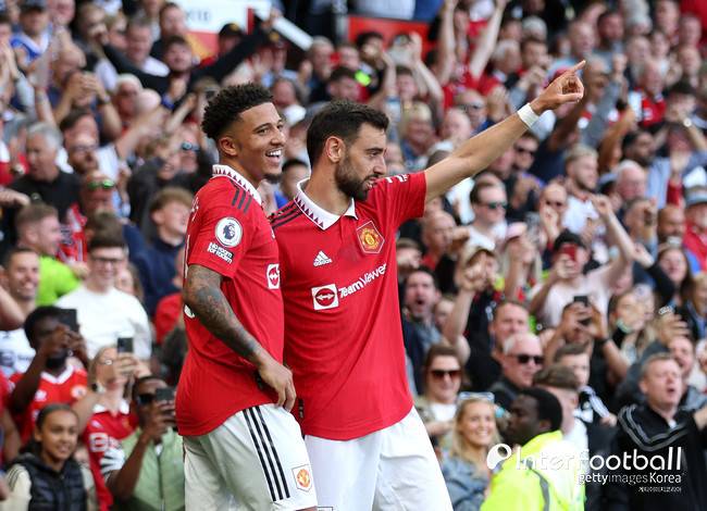맨유가 균형을 맞췄다. 전반 39분, 브루노의 패스를 받은 프레드가 문전 돌파 과정에서 수비수와 경합하다가 넘어졌다. 그러면서 옆으로 흐른 공을 산초가 밀어 넣었다.