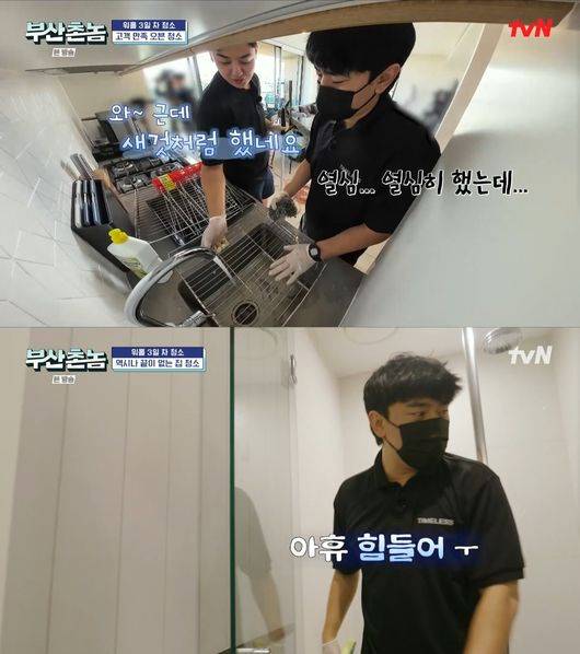10분 지각해 ‘회장님’으로부터 야단을 맞았지만, 이시언은 섬세하고 꼼꼼하게 아파트 구석구석을 청소했다. 기피할 수 있는 화장실 청소도 무리 없이 해냈고, 눈에 보이지 않을 변기 곳곳을 청소하며 어느덧 일에 적응된 모습을 보였다.